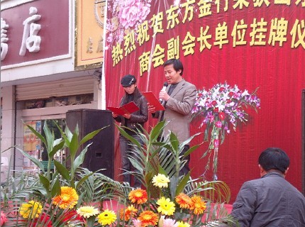2010年11月10日上午,山東省珠寶商會會長杜磊同志率隊到臨沂-沂南縣和沂水縣調(diào)研,先后參觀了沂南和沂水珠寶金店并參加了沂南東方金行"榮獲山東省珠寶商會副會長單位掛牌儀式暨擴建竣工慶典”活動。